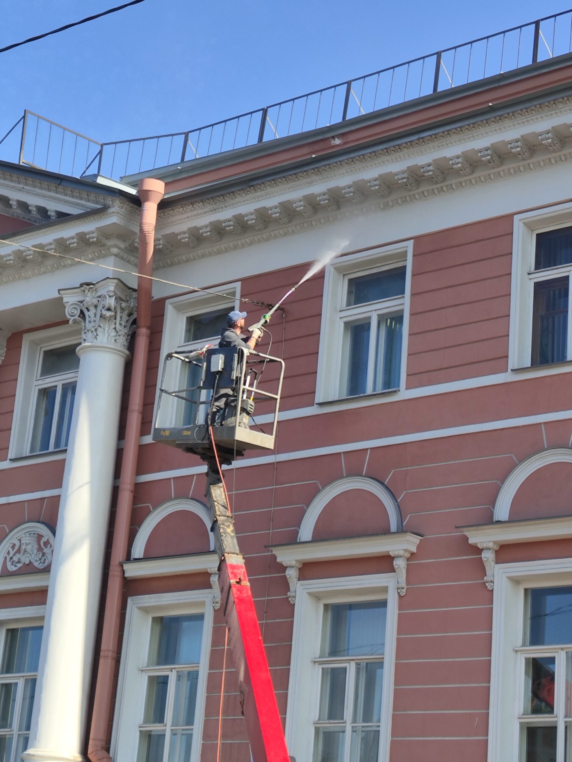 В рамках весеннего очистки города после зимних метелей в СПБ ГБУЗ ГВФД была выполнена комплексная мойка фасадов здания.